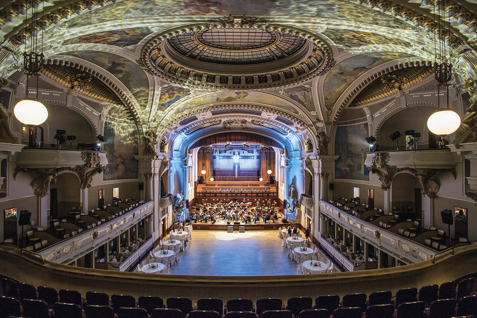 Considered by many to be the finest example of Art Nouveau architecture in Prague, this building is a triumph of artistic collaboration. Constructed between 1905 and 1911 the house was built to the designs of Osvald Polivka and Antonin Balsanek. The interior, which includes a number of impressive works by the world famous Czech artist Alfons Mucha, is surpassed only by the building’s lavish entrance and exterior façade. Here, the central wrought iron gate and stained glass canopy are complimented by a truly delightful mosaic entitled ‘Homage to Prague’. Building is built around Prague’s biggest concert venue – Smetana Hall, thus providing a wonderful setting for the Prague Spring Festival.
